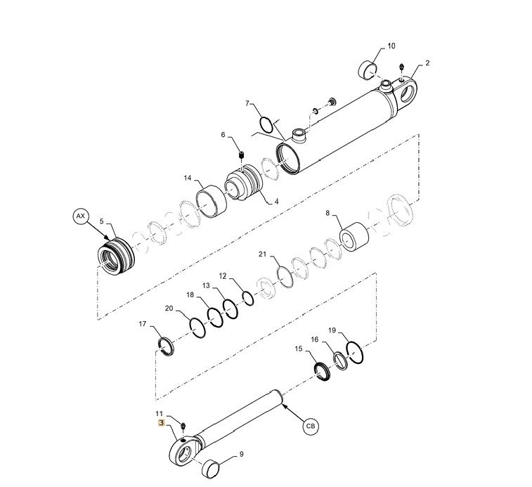 Шток предназначен для установки в гидроцилиндр ковша погрузчика CASE 570ST, участвуя в: